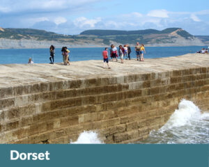 Walk through the luscious green landscapes of Dorset to Lyme Regis on the famous Jurassic Coast. This pretty seaside town sits above a sandy beach leading to a little harbour protected by ‘The Cobb’ – a wide seawall that was the setting for a pivotal scene in Persuasion. Take care on the stone steps, as you won’t want to fall as Louisa Musgrove did – there’s unlikely to be a gallant naval Captain ready to catch you!