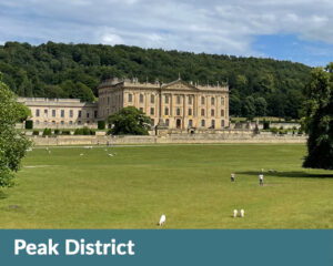 Visit stately Chatsworth House, probably the grandest house in Derbyshire, while hiking our Peak District route. It is widely assumed that the home of the Dukes of Devonshire is the model for Mr Darcy’s ‘Pemberley’ in Pride and Prejudice. Indeed, the 2015 film adaptation of Jane Austen’s novel starring Keira Knightley was partly filmed at the house. Austen visited Chatsworth while staying at nearby Bakewell in 1811, and called the town ‘Lambton’ in the novel.